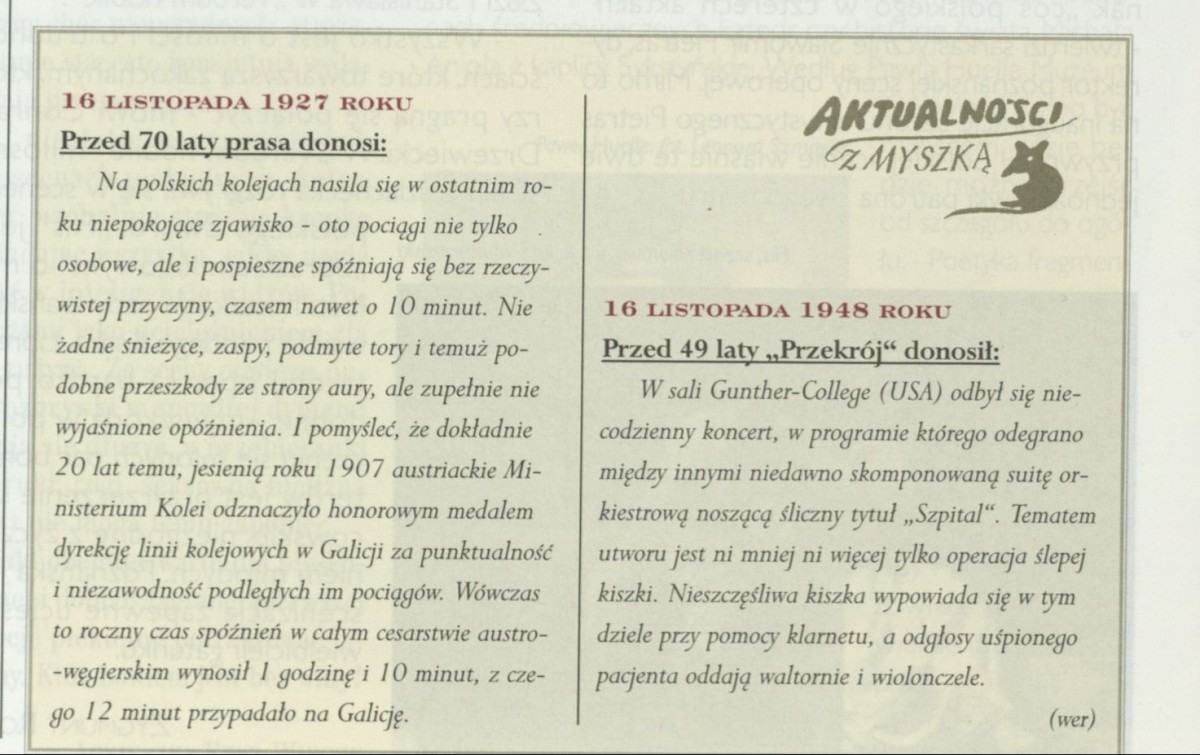 Archiwum / Aktualności z myszką nr 2734 (46/1997) 06/50 Podziel się Tytuł Aktualności z Myszką Autor wer Rubryka Aktualności z myszką Artykuł z numeru 2734 (46/1997) Data wydania 16 listopada 1997