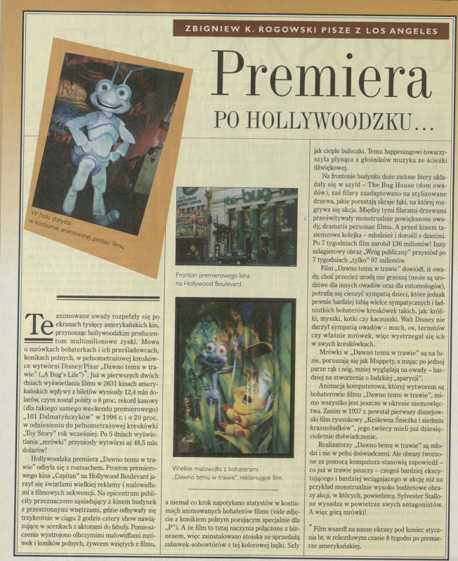 Archiwum / Film nr specjalny 2801/1999 18/88 Podziel się Tytuł Premiera po hollywoodzku... Autor Zbigniew K. Rogowski Rubryka Film Artykuł z numeru nr specjalny 2801/1999 Data wydania 21 lutego 1999 Tagi Hollywood "Dawno temu w trawie" premiera film animowany animacja komputerowa bajka