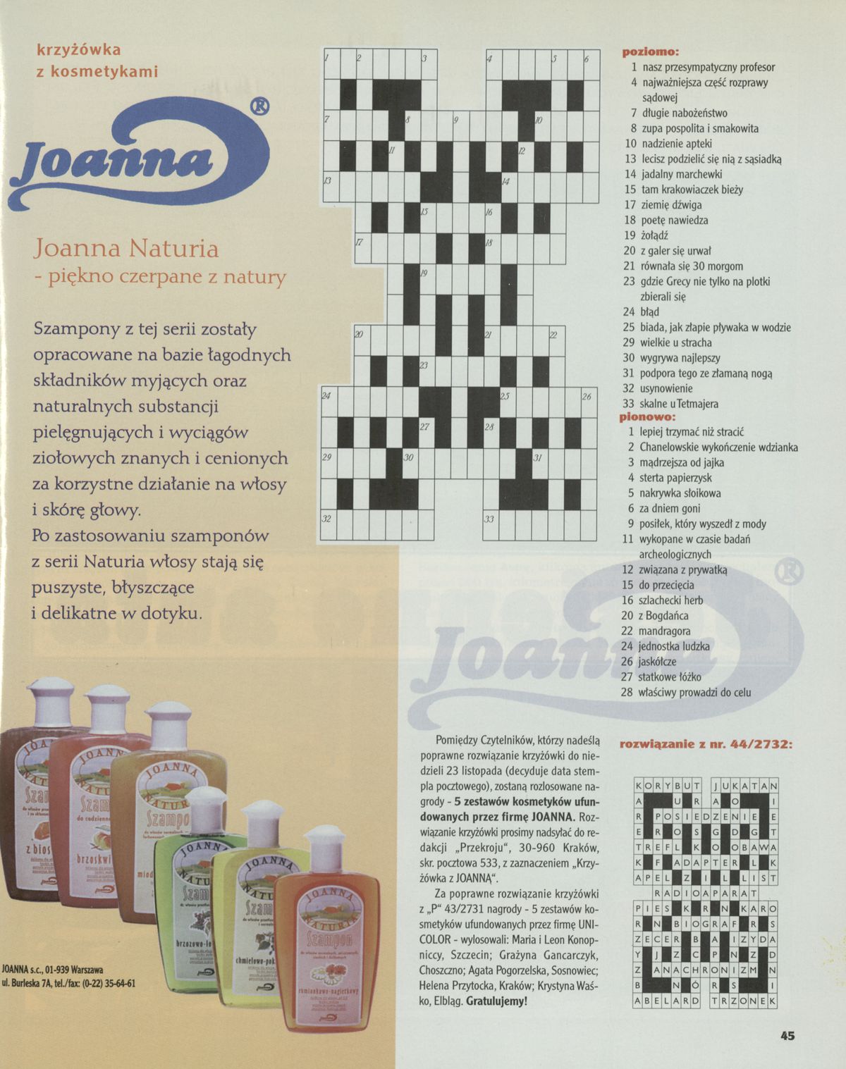 Archiwum / Krzyżówka nr 2734 (46/1997) 34/37 Podziel się Tytuł Krzyżówka z kosmetykami Rubryka Krzyżówka Artykuł z numeru 2734 (46/1997) Data wydania 16 listopada 1997 Tagi krzyzówka