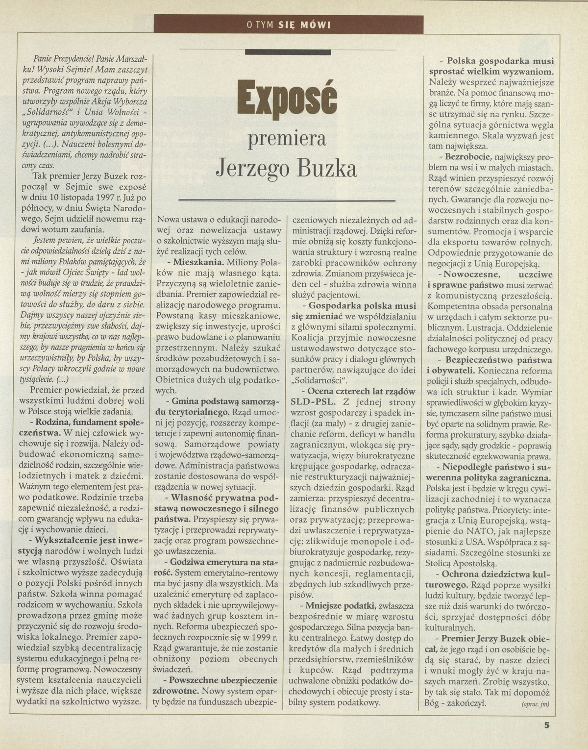 Archiwum / Artykuł nr 2735 (47/1997) 18/20 Podziel się Tytuł Expose premiera Buzka Autor jm. Kategoria Artykuł Artykuł z numeru 2735 (47/1997) Data wydania 23 listopada 1997 Tagi gospodarka bezrobocie