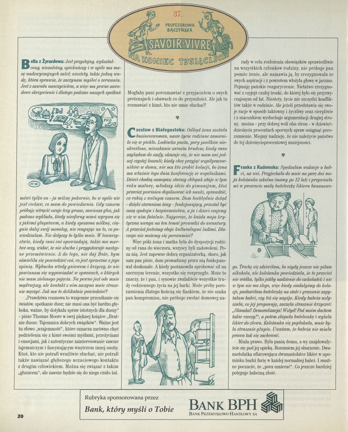Archiwum / Społeczeństwo nr 2735 (47/1997) 19/208 Podziel się Tytuł Savoir vivre na koniec tysiąclecia Autor Bączyńska Kategoria Społeczeństwo Artykuł z numeru 2735 (47/1997) Data wydania 23 listopada 1997 Tagi savoir-vivre