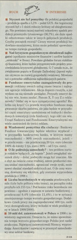 Archiwum / Różności nr specjalny 2803/1999 03/273 Podziel się Tytuł Ruch w interesie Kategoria Różności Artykuł z numeru nr specjalny 2803/1999 Data wydania 7 marca 1999 Tagi gospodarka finanse