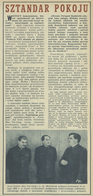 Archiwum / Artykuł nr 415 (12/1953) 05/15 Podziel się Tytuł Sztandar pokoju Autor Czesław Komarnicki Kategoria Artykuł Artykuł z numeru 415 (12/1953) Data wydania 16 marca 1953 Tagi socjalizm stalinizm polityka