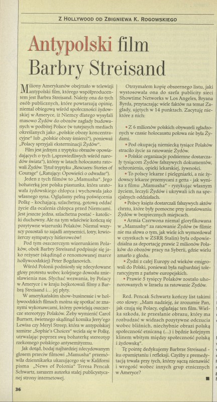 Archiwum / Film nr 2735 (47/1997) 117295/123969 Podziel się Tytuł Antypolski film Barbary Stresand Autor Zbigniew K. Rogowski Rubryka Film Artykuł z numeru 2735 (47/1997) Data wydania 23 listopada 1997