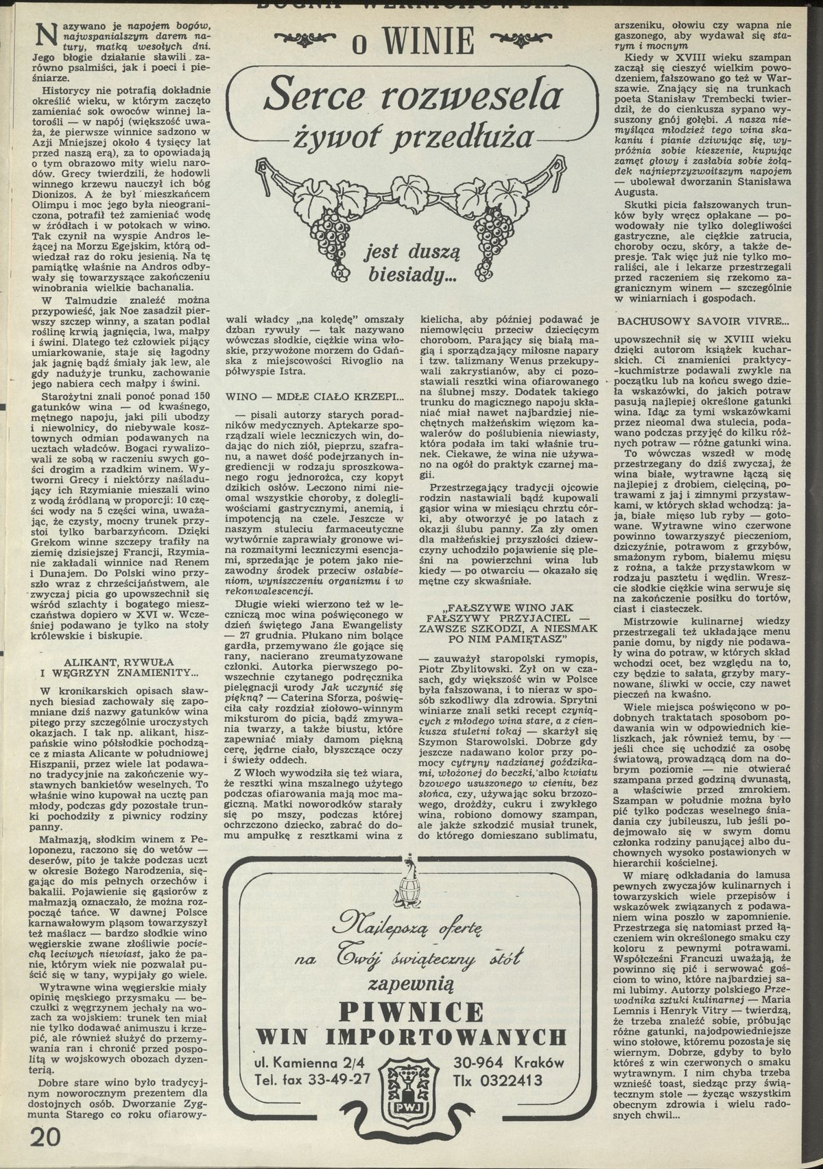 Archiwum / Kultura nr 2426-27 (24-24/1991) 179/185 Podziel się Tytuł O winie: serce rozwesela, żywot przedłuża, jest duszą biesiady... Autor Bo Wer Kategoria Kultura Artykuł z numeru 2426-27 (2427/1991) Data wydania 22 grudnia 1991