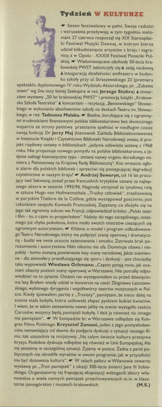Archiwum / Tydzień w kulturze nr specjalny 26/1996 1/3 Podziel się Tytuł Tydzień w kulturze Autor M.S. Rubryka Tydzień w kulturze Artykuł z numeru nr specjalny 26/1996 Data wydania 30 czerwca 1996 Tagi kultura Krzysztof Zanussi Andrzej Seweryn