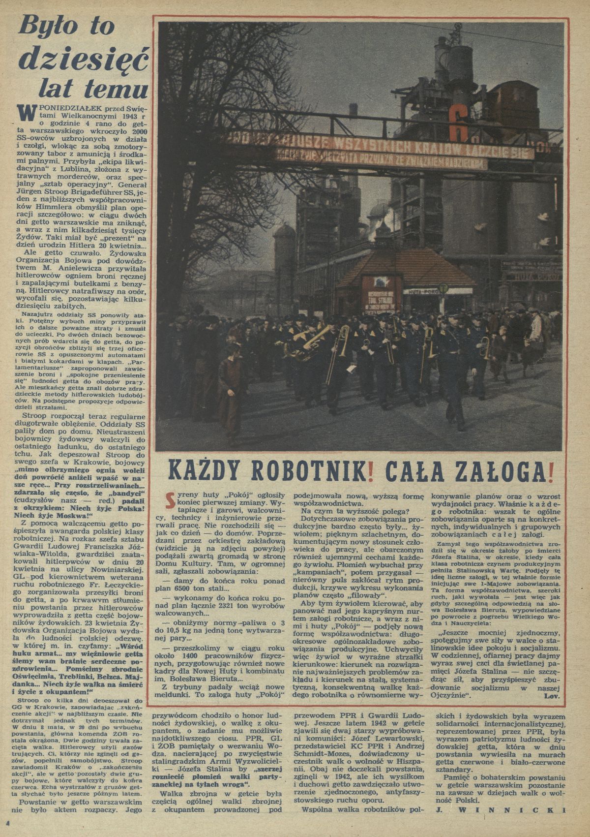 Archiwum / Artykuł nr 419 (16/1953) 2/2 Podziel się Tytuł Było to dziesięć lat temu Autor Jerzy Winnicki Kategoria Artykuł Artykuł z numeru 419 (16/1953) Data wydania 13 kwietnia 1953 Tagi getto SS PPR Gwardia Ludowa Stalin hitlerowcy