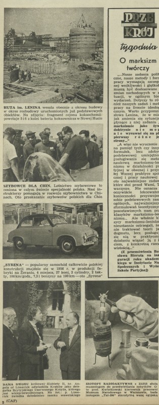 Archiwum / Przekrój tygodnia nr 549 (42/1955) 04/10 Podziel się Tytuł Przekrój tygodnia Autor CAF Rubryka Przekrój tygodnia Artykuł z numeru 549 (42/1955) Data wydania 16 października 1955 Tagi huta im. Lenina lotnictwo "Syrena" izotopy radioaktywne muzeolog