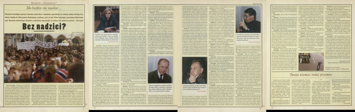 Archiwum / Rozmowy „Przekroju” nr 2741 (27/1998) 122/123 Podziel się Tytuł Bez nadziei? Autor Jerzy Piekarczyk Rubryka Rozmowy „Przekroju” Artykuł z numeru 2741 (2742/1998) Data wydania 4 stycznia 1998 Tagi agresja dzieci przestepstwa
