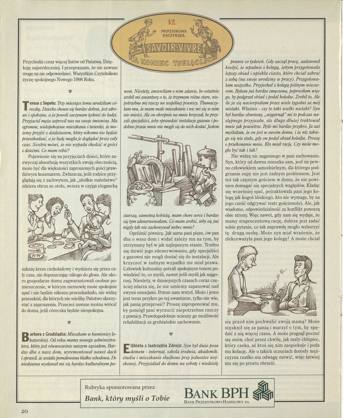 Archiwum / Społeczeństwo nr 2741 (27/1998) 03/186 Podziel się Tytuł Savoir vivre na koniec tysiąclecia Autor Bączyńska Kategoria Społeczeństwo Artykuł z numeru 2741 (2742/1998) Data wydania 4 stycznia 1998 Tagi savoir-vivre