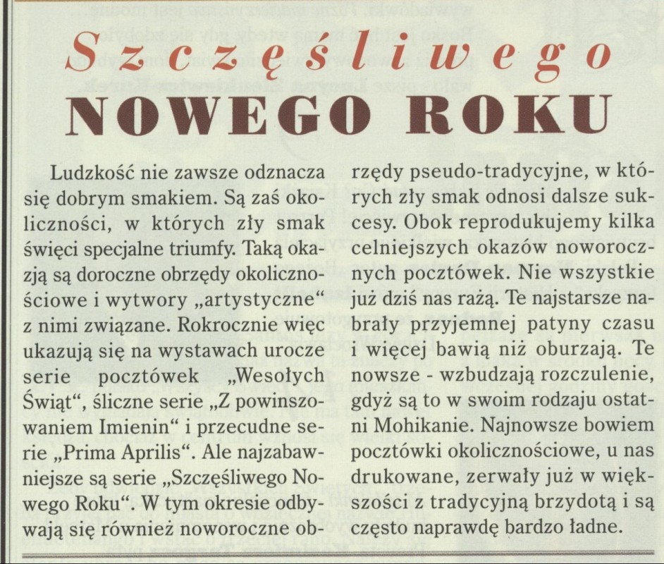 Archiwum / Społeczeństwo nr 2742 (27/1998) 08/186 Podziel się Tytuł Szczęsliwego Nowego roku Kategoria Społeczeństwo Artykuł z numeru 2742 (2743/1998) Data wydania 11 stycznia 1998 Tagi życzenia forma