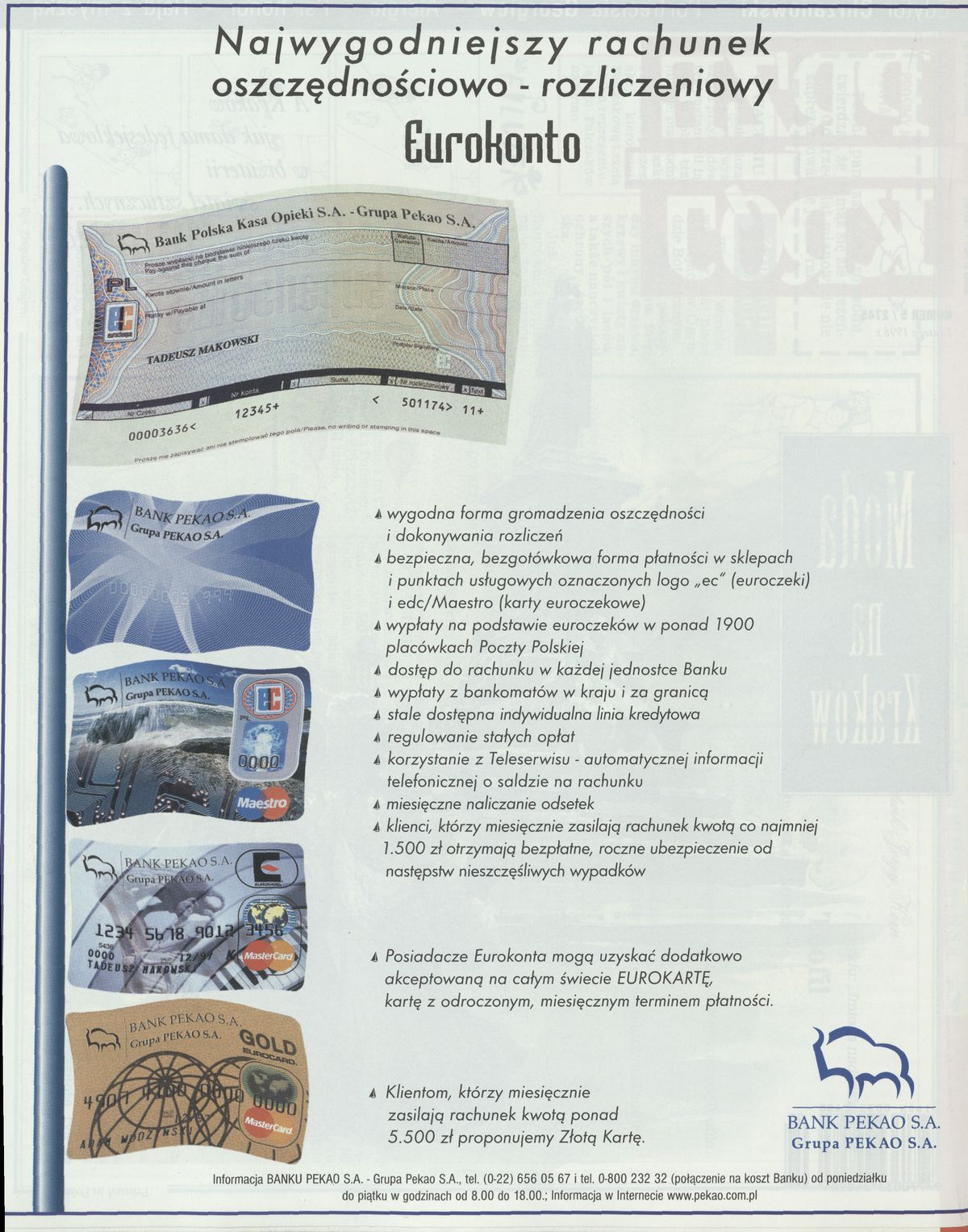 Archiwum / Reklamy nr 2745 (27/1998) 184/2441 Podziel się Tytuł Eurokonto Rubryka Reklamy Artykuł z numeru 2745 (2746/1998) Data wydania 1 lutego 1998 Tagi eurokonto
