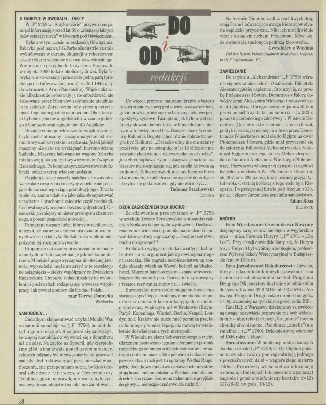Archiwum / Listy do i od redakcji nr 2763 (27/1998) 72/454 Podziel się Tytuł Do i od redakcji Rubryka Listy do i od redakcji Artykuł z numeru 2763 (2764/1998) Data wydania 7 czerwca 1998 Tagi stopa życiowa
