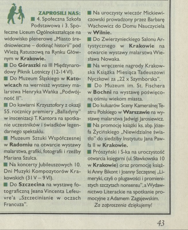 Archiwum / Zaprosili nas nr 2763 (27/1998) 140/145 Podziel się Tytuł Zaprosili nas Rubryka Zaprosili nas Artykuł z numeru 2763 (2764/1998) Data wydania 7 czerwca 1998 Tagi koncert