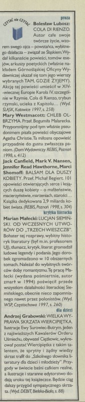 Archiwum / Czytać albo nie czytać? nr 2756 (27/1998) 118512/123969 Podziel się Tytuł Czytać nie czytać Rubryka Czytać albo nie czytać? Artykuł z numeru 2756 (2757/1998) Data wydania 19 kwietnia 1998 Tagi książki