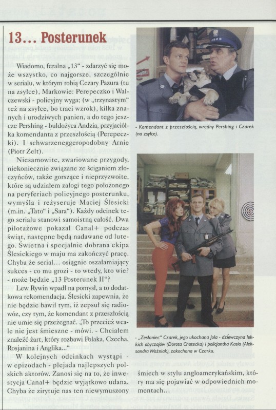 Archiwum / Film nr 2742 (27/1998) 354/499 Podziel się Tytuł 13 posterunek Rubryka Film Artykuł z numeru 2742 (2743/1998) Data wydania 11 stycznia 1998 Tagi film posterunek