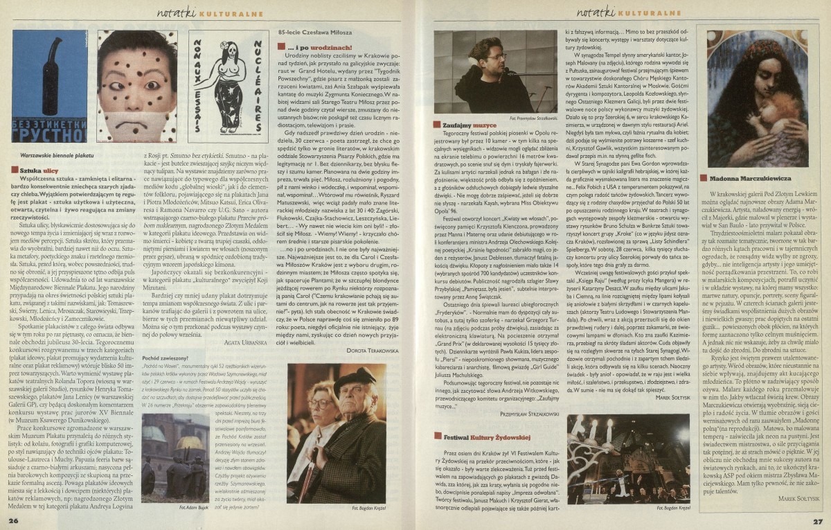 Archiwum / Kultura nr specjalny 29/1996 24/48 Podziel się Tytuł Notatki kulturalne Autor Agata Urbańska, Dorota Terakowska Kategoria Kultura Artykuł z numeru nr specjalny 29/1996 Data wydania 21 lipca 1996 Tagi kultura plakaty Czesław Miłosz urodziny