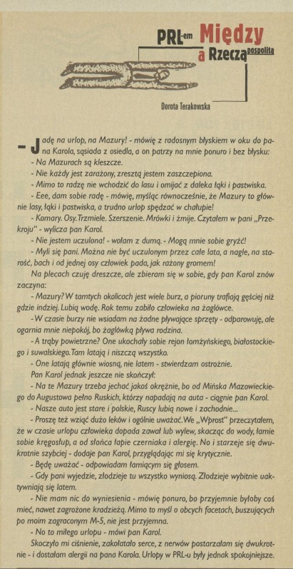 Archiwum / Felieton nr specjalny 29/1996 246/419 Podziel się Tytuł Między PRL-em a Rzecząpospolitą Autor Dorota Terakowska Kategoria Felieton Artykuł z numeru nr specjalny 29/1996 Data wydania 21 lipca 1996 Tagi felieton PRL Rzeczpospolita