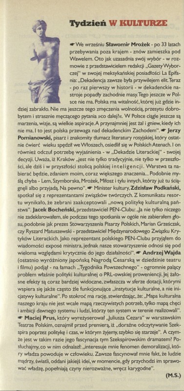 Archiwum / Tydzień w kulturze nr specjalny 29/1996 5/7 Podziel się Tytuł Tydzień w kulturze Autor M.S. Rubryka Tydzień w kulturze Artykuł z numeru nr specjalny 29/1996 Data wydania 21 lipca 1996 Tagi kultura Andrzej Wajda Sławomir Mrożek