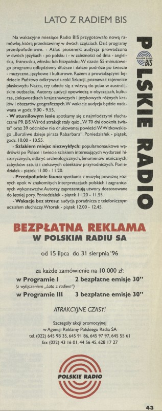 Archiwum / Artykuł nr specjalny 29/1996 18/37 Podziel się Tytuł Lato z Radiem BIS Kategoria Artykuł Artykuł z numeru nr specjalny 29/1996 Data wydania 21 lipca 1996 Tagi Polskie Radio audycje