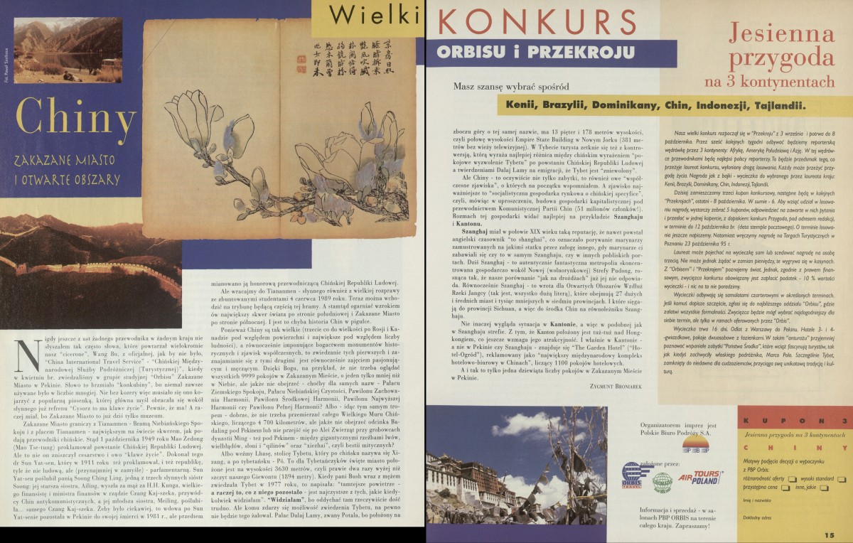 Archiwum / Konkurs nr 2621 (38/1995) 26/98 Podziel się Tytuł Wielki konkurs Orbisu i Przekroju. Chiny - zakazane miasto i otwarte obszary Autor Zygmunt Broniarek Rubryka Konkurs Artykuł z numeru 2621 (38/1995) Data wydania 17 września 1995