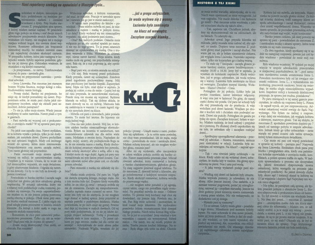 Archiwum / Proza nr 2587 (04/1995) 1/3 Podziel się Tytuł Historie nie z tej Ziemi: Klucz Autor Elżbieta Dziwisz Kategoria Proza Artykuł z numeru 2587 (4/1995) Data wydania 22 stycznia 1995