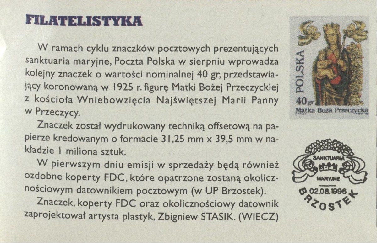 Archiwum / Filatelistyka nr 2667 (31/1996) 109/112 Podziel się Tytuł Filatelistyka Autor Wiecz Rubryka Filatelistyka Artykuł z numeru 2667 (31/1996) Data wydania 4 sierpnia 1996 Tagi filatelistyka znaczki pocztowe Matka Boska