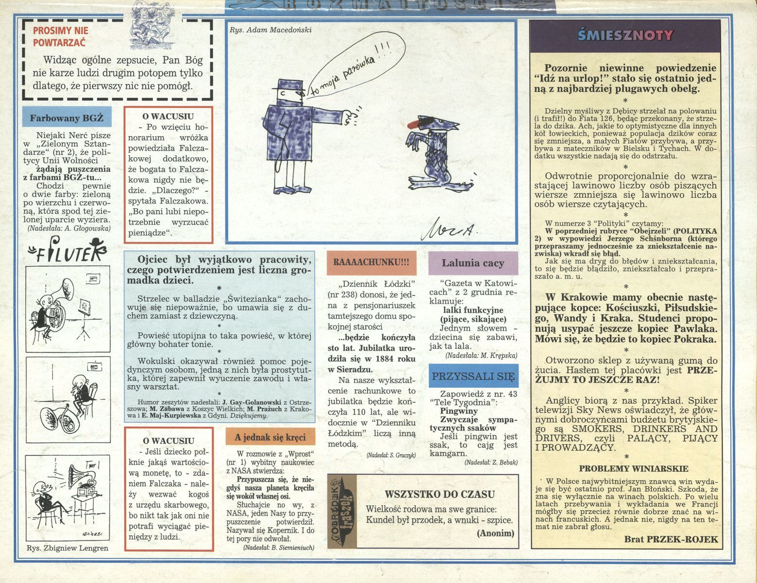Archiwum / O Wacusiu nr 2591 (08/1995) 11/57 Podziel się Tytuł O Wacusiu Rubryka O Wacusiu Artykuł z numeru 2591 (8/1995) Data wydania 19 lutego 1995