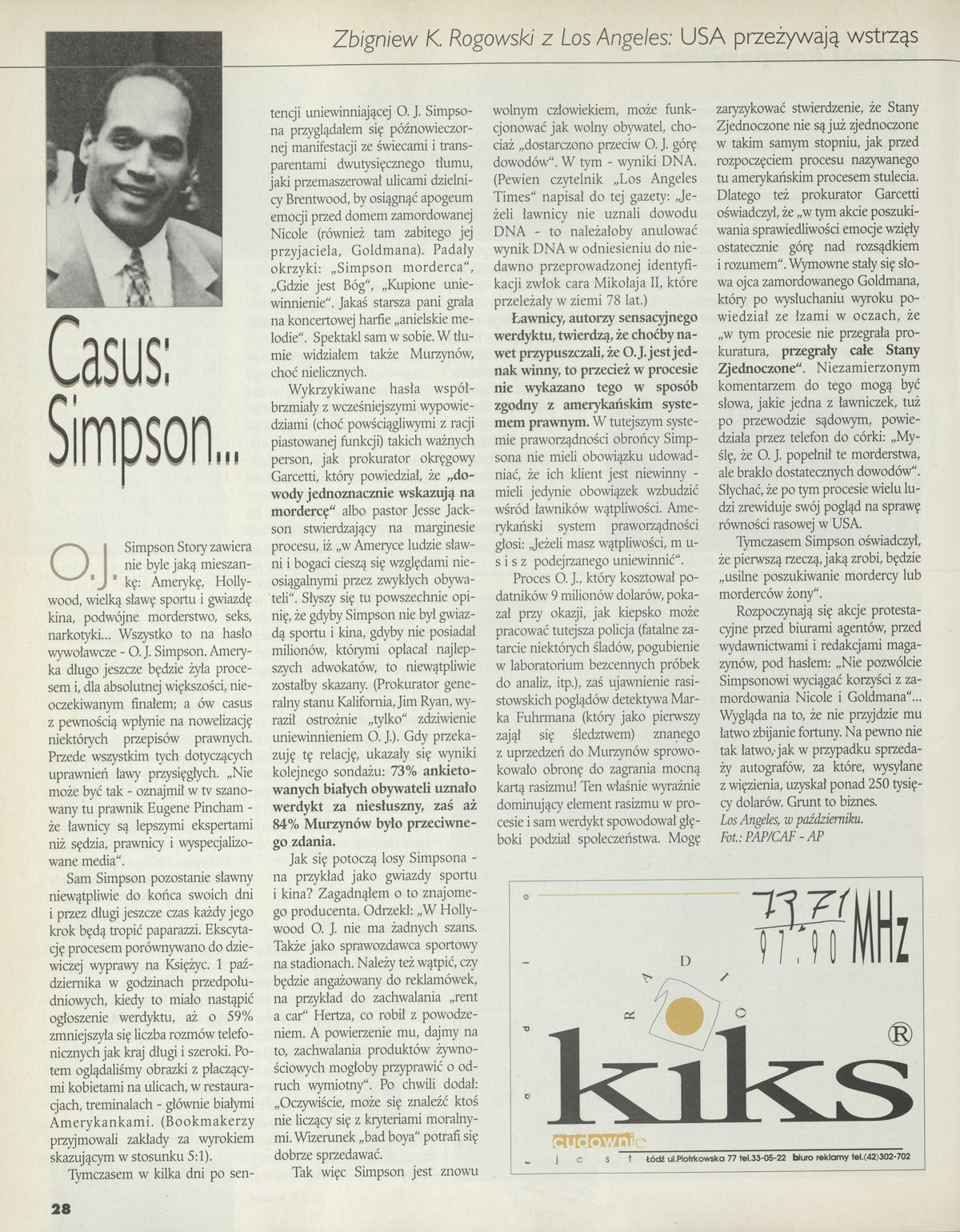 Archiwum / korespondencja własna "Przekroju" nr 2627 (44/1995) 2/5 Podziel się Tytuł Casus: Simpson Autor Zbigniew K. Rogowski Rubryka korespondencja własna "Przekroju" Artykuł z numeru 2627 (44/1995) Data wydania 29 października 1995 Tagi Los Angeles O. J. Simpson