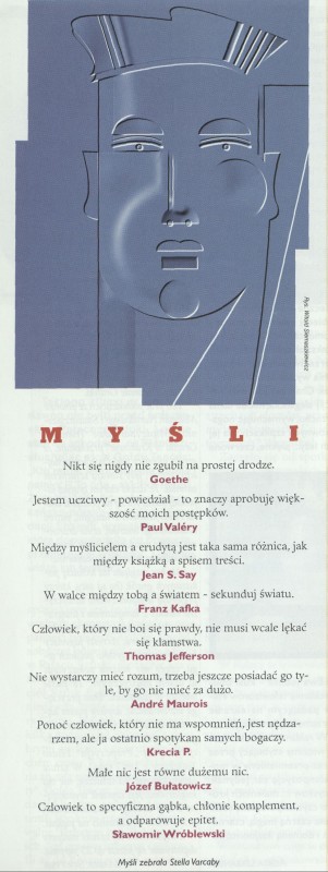 Archiwum / Myśli nr specjalny 33/1996 997/2857 Podziel się Tytuł Myśli Autor Stella Varcaby Rubryka Myśli Artykuł z numeru nr specjalny 33/1996 Data wydania 18 sierpnia 1996 Tagi myśli Krecia P. Goethe