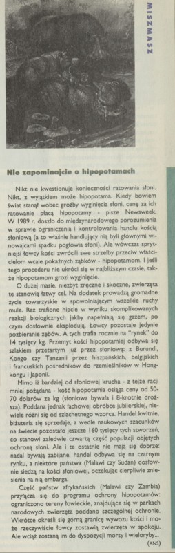 Archiwum / Rozmaitości [old] nr specjalny 52/1994 108878/123969 Podziel się Tytuł Nie zapominajcie o hipopotamach Autor ANS Rubryka Rozmaitości [old] Artykuł z numeru nr specjalny 52/1994 Data wydania 19 grudnia 1994