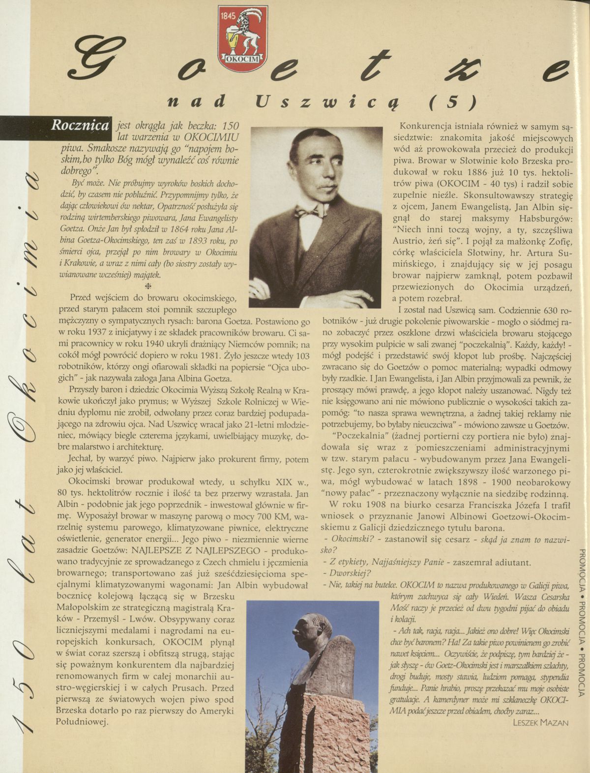 Archiwum / Reklamy nr 2582 (51/1994) 50/1449 Podziel się Tytuł 150 lat Okocimia Autor Leszek Mazan Rubryka Reklamy Artykuł z numeru 2582 (51/1994) Data wydania 18 grudnia 1994