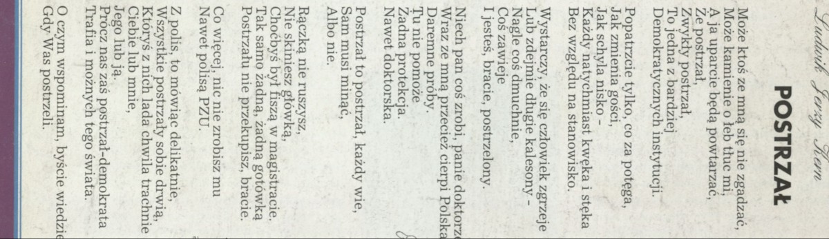 Archiwum / Rozmaitości [old] nr 2582 (51/1994) 108849/123969 Podziel się Tytuł Postrzał Autor Ludwik Jerzy Kern Rubryka Rozmaitości [old] Artykuł z numeru 2582 (51/1994) Data wydania 18 grudnia 1994