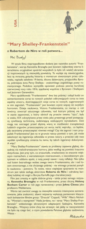 Archiwum / Listy o filmie nr 2593 (10/1995) 109490/123969 Podziel się Tytuł Listy o filmie Autor Aleksandra Rubryka Listy o filmie Artykuł z numeru 2593 (10/1995) Data wydania 5 marca 1995 Tagi film kinematografia mary selley frankenstein