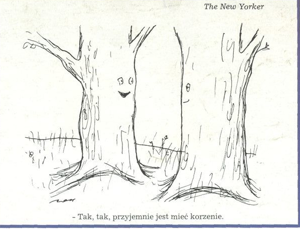 Archiwum / Rysunki z magazynu The New Yorker nr 2593 (10/1995) 03/19 Podziel się Tytuł – Tak, tak, przyjemnie jest mieć korzenie Autor The New Yorker Rubryka Rysunki z magazynu The New Yorker Artykuł z numeru 2593 (10/1995) Data wydania 5 marca 1995 Tagi żart rysunkowy drzewa korzenie