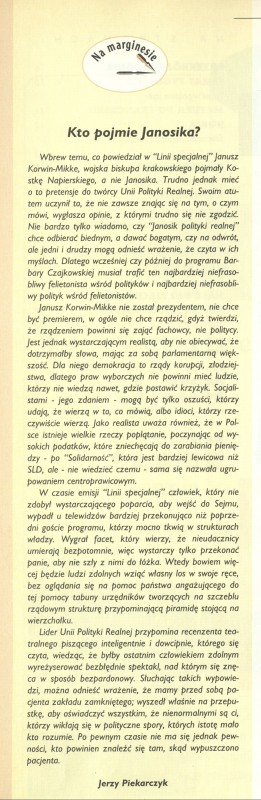 Archiwum / Artykuł nr 2594 (11/1995) 2/2 Podziel się Tytuł Kto pojmie Janosika? Autor Jerzy Piekarczyk Kategoria Artykuł Artykuł z numeru 2594 (11/1995) Data wydania 12 marca 1995