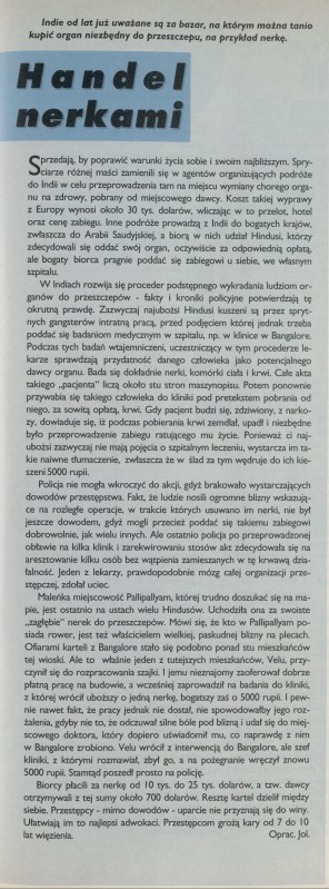 Archiwum / Artykuł nr 2597 (14/1995) 14266/123969 Podziel się Tytuł Handel nerkami Autor jol. Kategoria Artykuł Artykuł z numeru 2597 (14/1995) Data wydania 2 kwietnia 1995