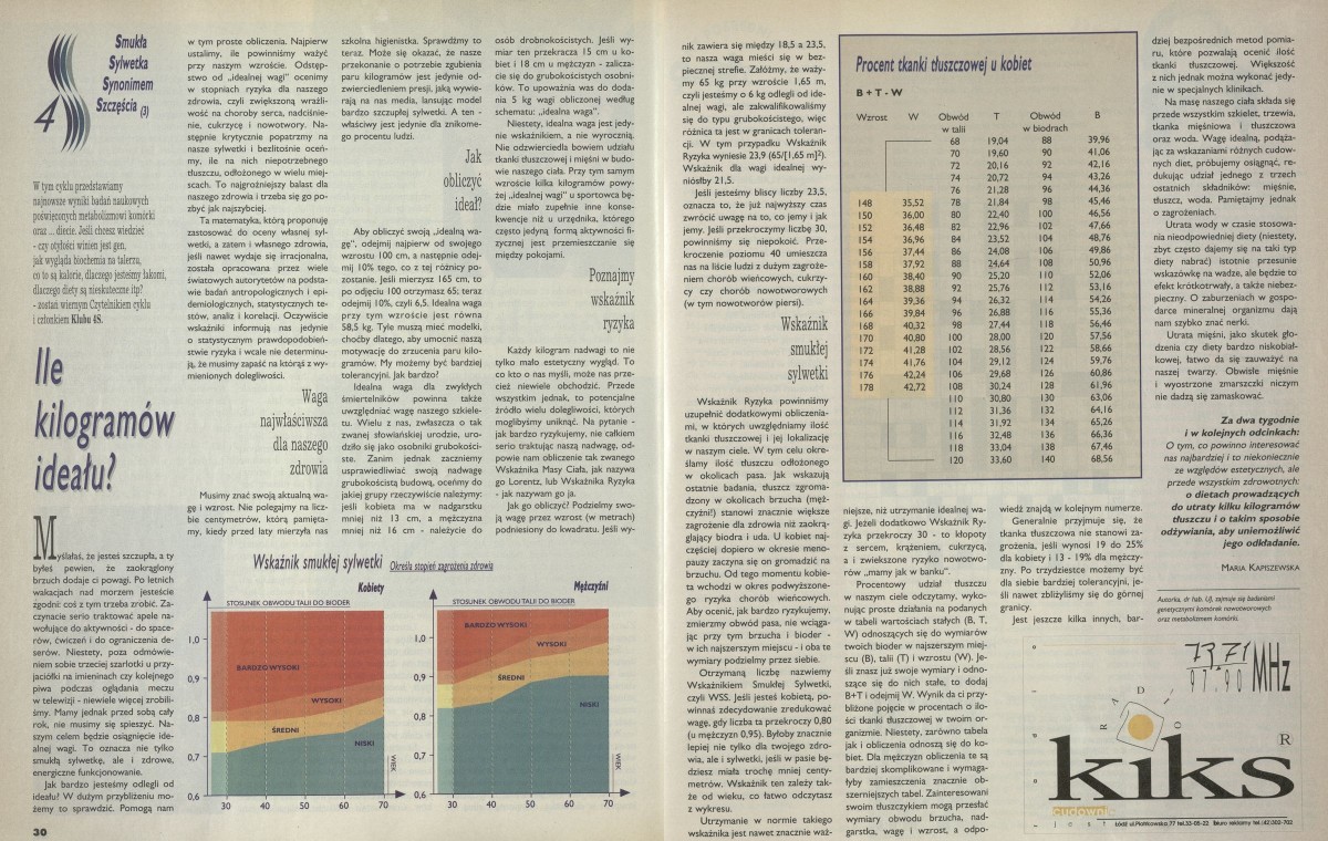 Archiwum / Społeczeństwo nr 2629 (46/1995) 18/111 Podziel się Tytuł Ile kilogramów ideału? Autor Maria Kapiszewska Kategoria Społeczeństwo Artykuł z numeru 2629 (46/1995) Data wydania 12 listopada 1995 Tagi sylwetka zdrowie kalorie uroda
