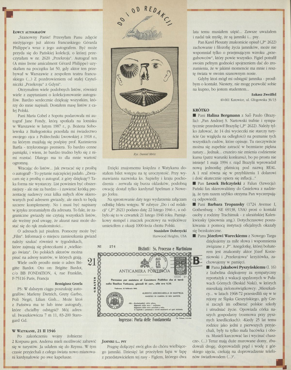 Archiwum / Listy do i od redakcji nr 2630 (47/1995) 69/101 Podziel się Tytuł [Listy] Rubryka Listy do i od redakcji Artykuł z numeru 2630 (47/1995) Data wydania 19 listopada 1995 Tagi listy do redakcji korespondencja skrzynka odpowiedzi