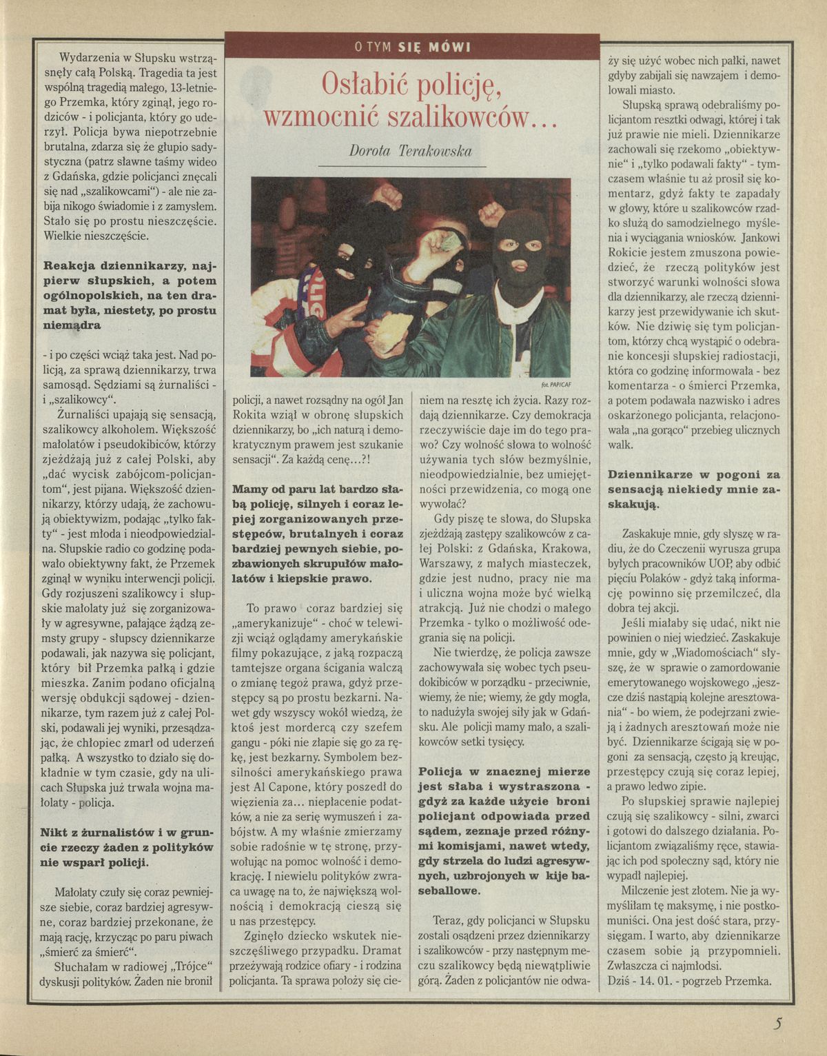 Archiwum / Artykuł nr 2744 (27/1998) 01/11 Podziel się Tytuł Osłabić policję, wzmocnić szalikowców Autor Dorota Terakowska Kategoria Artykuł Artykuł z numeru 2744 (2745/1998) Data wydania 25 stycznia 1998 Tagi Słupsk szalikowcy