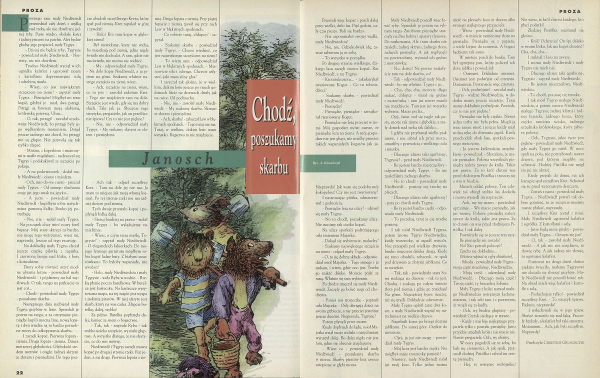 Archiwum / Proza nr 2632 (49/1995) 12381/123969 Podziel się Tytuł Chodź, poszukamy skarbu Autor Janosch Kategoria Proza Artykuł z numeru 2632 (49/1995) Data wydania 3 grudnia 1995 Tagi proza janosch