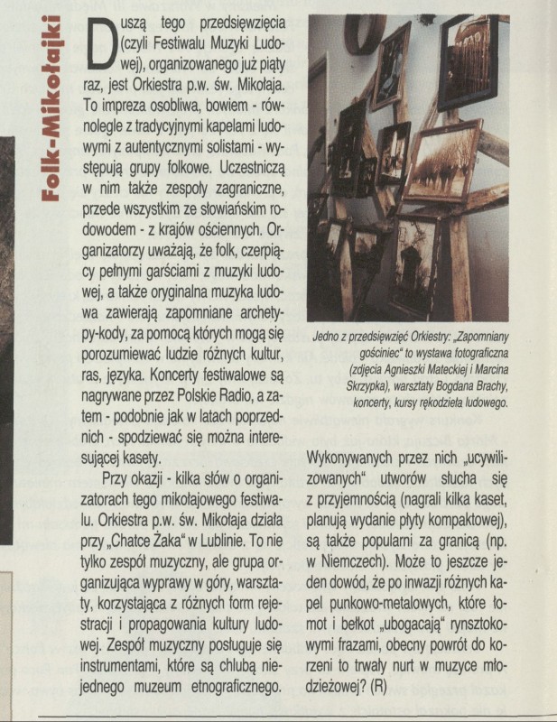 Archiwum / Różności nr 2634 (51/1995) 111671/123969 Podziel się Tytuł Folk-Mikołajki Autor R. Kategoria Różności Artykuł z numeru 2634 (51/1995) Data wydania 17 grudnia 1995 Tagi Chatka Żaka Lublin