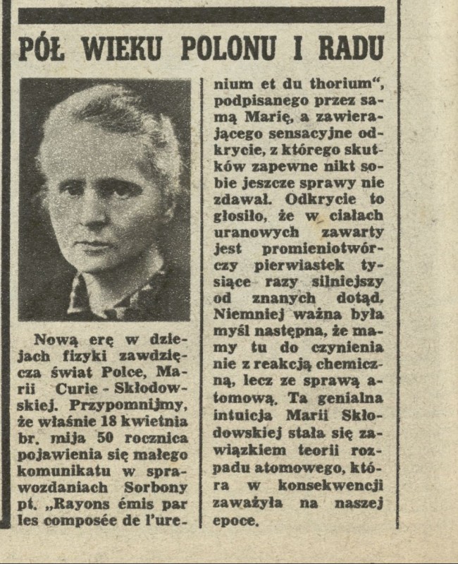 Archiwum nr 158 (16/1948) 18/31 Podziel się Tytuł Pół wieku polonu i radu Artykuł z numeru 158 (16/1948) Data wydania 16 kwietnia 1948 Tagi Curie-Skłodowska
