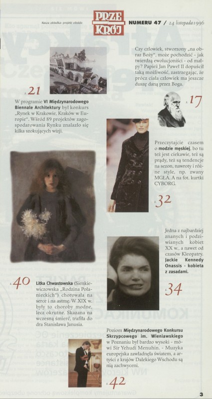 Archiwum / Przekrój tygodnia nr 2683 (47/1996) 280/506 Podziel się Tytuł Przekrój numeru 47 Rubryka Przekrój tygodnia Artykuł z numeru 2683 (47/1996) Data wydania 24 listopada 1996 Tagi konkurs