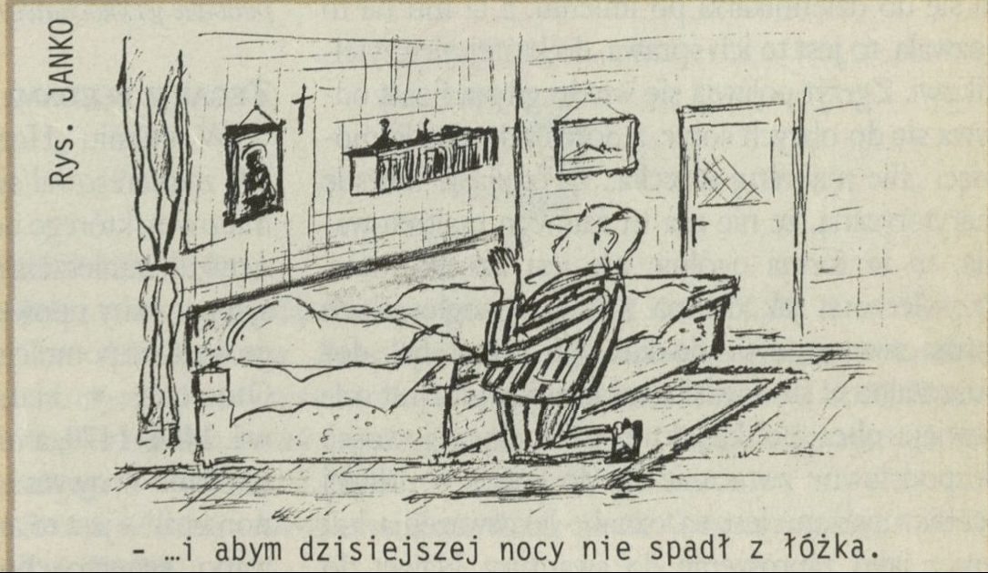 Archiwum / Rysunek nr 2645 (09/1996) 112232/123969 Podziel się Tytuł Modlitwa Autor Janko Kategoria Rysunek Artykuł z numeru 2645 (9/1996) Data wydania 3 marca 1996 Tagi żart rysunkowy noc łóżko