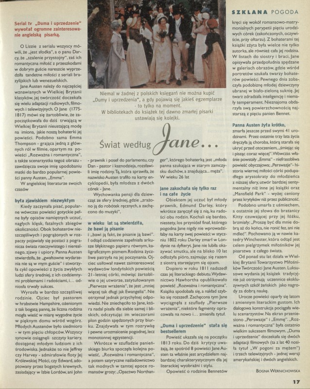 Archiwum / Artykuł nr 2678 (42/1996) 82/126 Podziel się Tytuł Świat według Jane Autor Bo Wer Kategoria Artykuł Artykuł z numeru 2678 (42/1996) Data wydania 20 października 1996 Tagi Duma i uprzedzenie