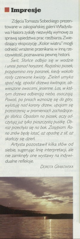 Archiwum / Recenzja nr 2678 (42/1996) 551/2857 Podziel się Tytuł Impresje Autor Dorota Grabowska Kategoria Recenzja Artykuł z numeru 2678 (42/1996) Data wydania 20 października 1996 Tagi świt