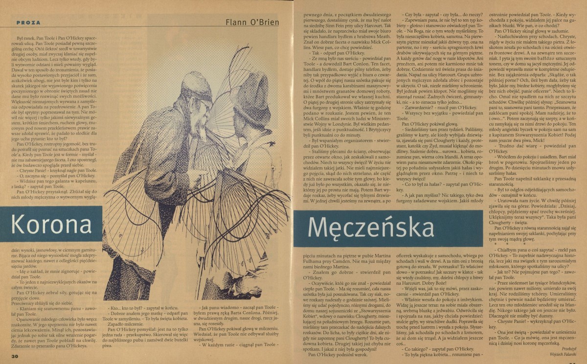 Archiwum / Proza nr specjalny 35/1996 157/206 Podziel się Tytuł Korona Męczeńska Autor Flann O'Brien Kategoria Proza Artykuł z numeru nr specjalny 35/1996 Data wydania 1 września 1996 Tagi proza Flann O'Brien
