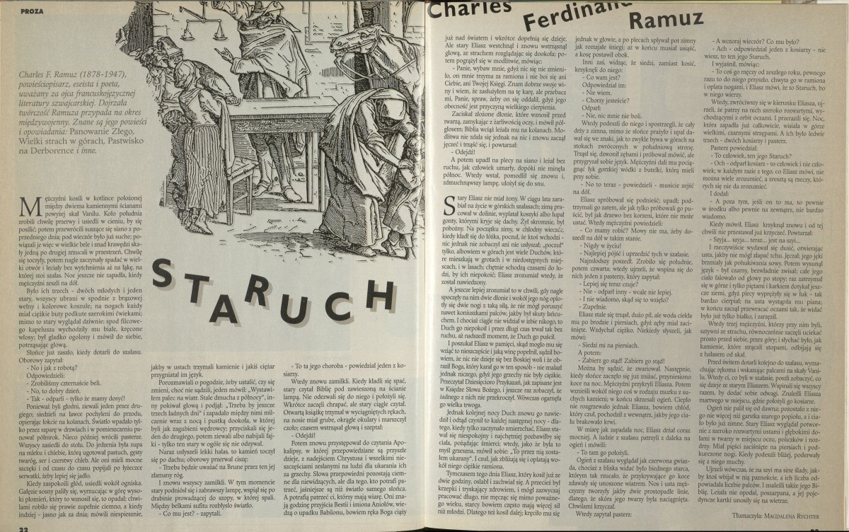 Archiwum / Opowiadanie nr 2643 (07/1996) 1/1 Podziel się Tytuł Staruch Autor Charles Ferdinand Ramuz Kategoria Opowiadanie Artykuł z numeru 2643 (7/1996) Data wydania 18 lutego 1996 Tagi proza Charles Ramuz