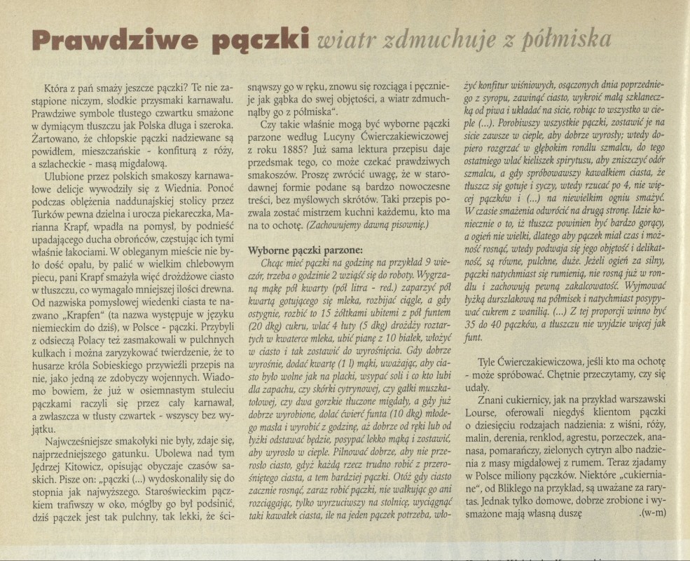 Archiwum / Różności nr 2643 (07/1996) 1/3 Podziel się Tytuł Prawdziwe pączki wiatr zdmuchuje z półmiska Autor w.-m. Kategoria Różności Artykuł z numeru 2643 (7/1996) Data wydania 18 lutego 1996 Tagi pączki słodycze przepis
